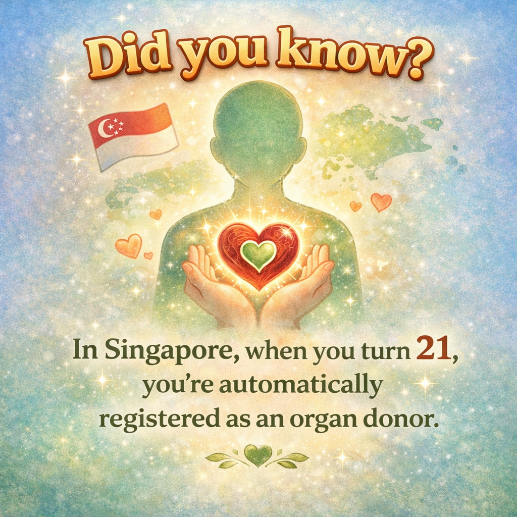 In Singapore, when you turn 21, you’re automatically registered as an organ donor. Post navigation 8th January 202610th January 2026
